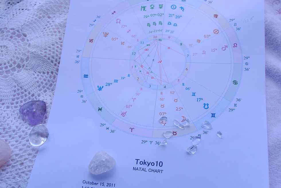 誰しも生まれ落ちた瞬間にその人独自の星の配置をもってこの世にやってきます。雑誌などにのっている星占いはとてもポピュラーですが、ここでの占星術は、一人一人の出生日・時刻・出生地から算出したホロスコープをもとにリーディングする、よりパーソナルなものになります。